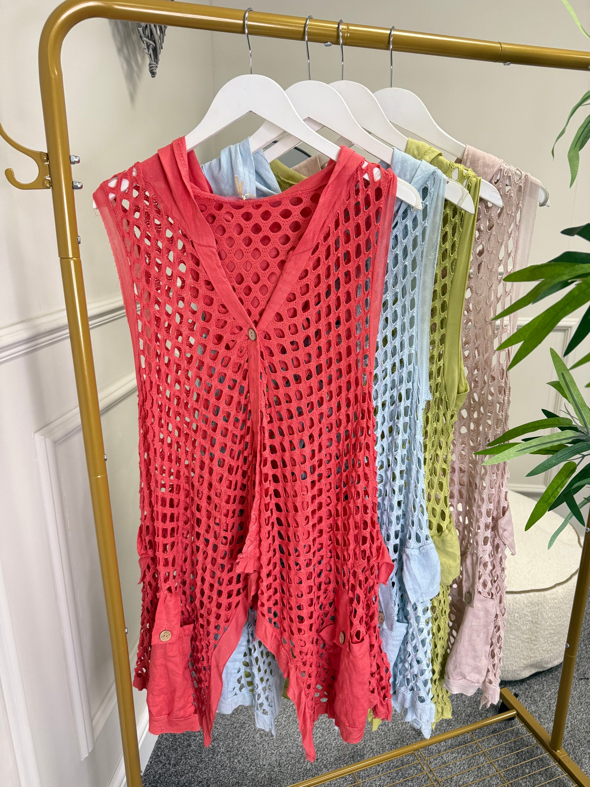 Crochet Mesh Sleeveless Waistcoat 10-18