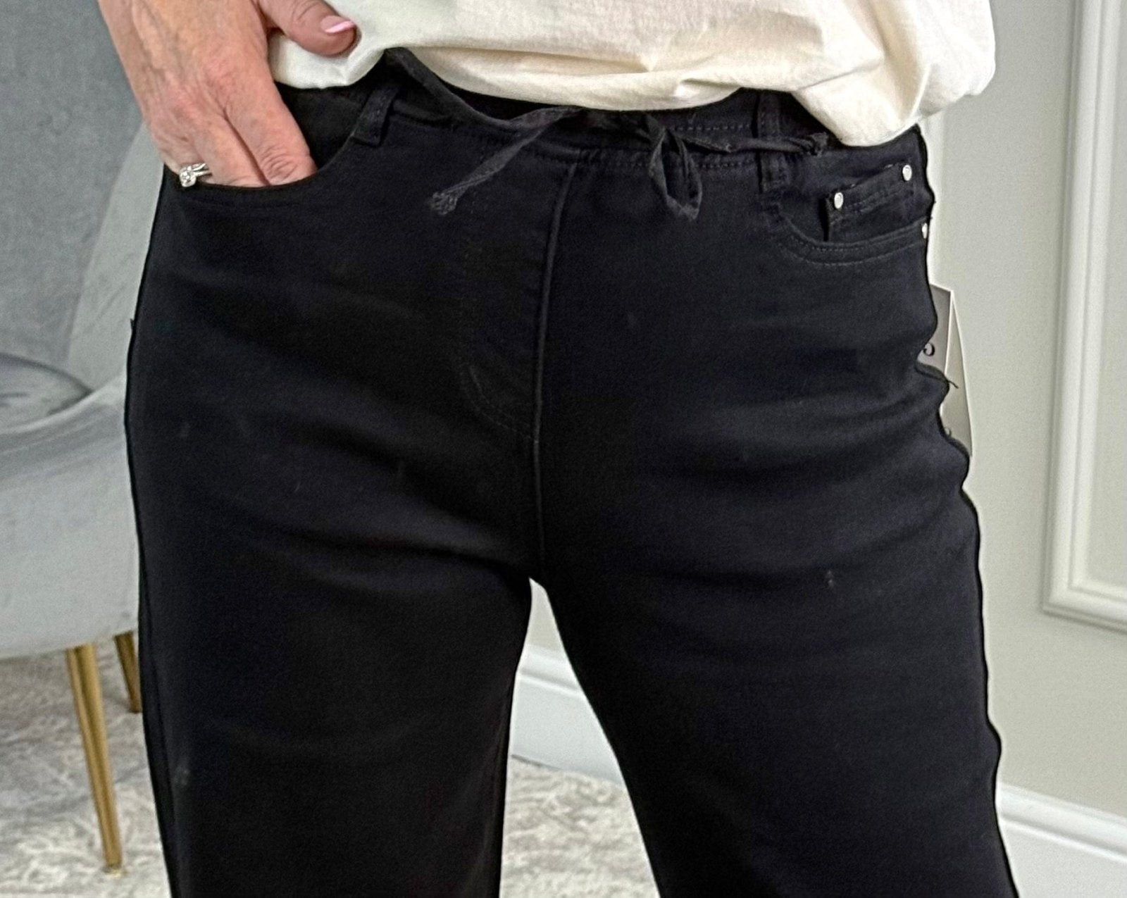 Discover our stylish drawstring pull on straight-leg jeans, designed for comfort and versatility.