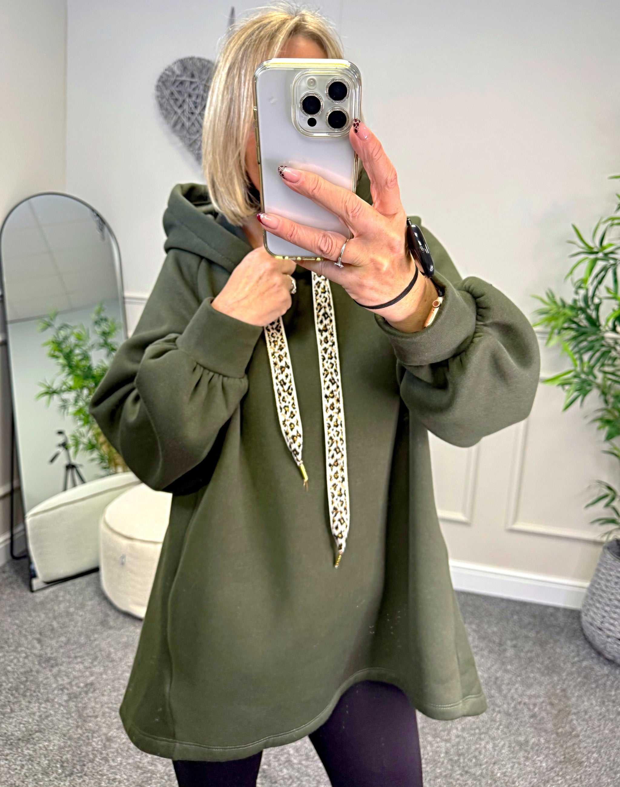 Get ready to lounge in style with the Julie Oversized Hoodie! Made for comfort and everyday wear, this hoodie features a relaxed, slouchy fit that flatters every shape. Crafted from soft cotton-blend fleece with ribbed cuffs and hem for that cozy finish. The bold printed drawstrings add a trendy touch — perfect for dressing up casual days or staying comfy at home.