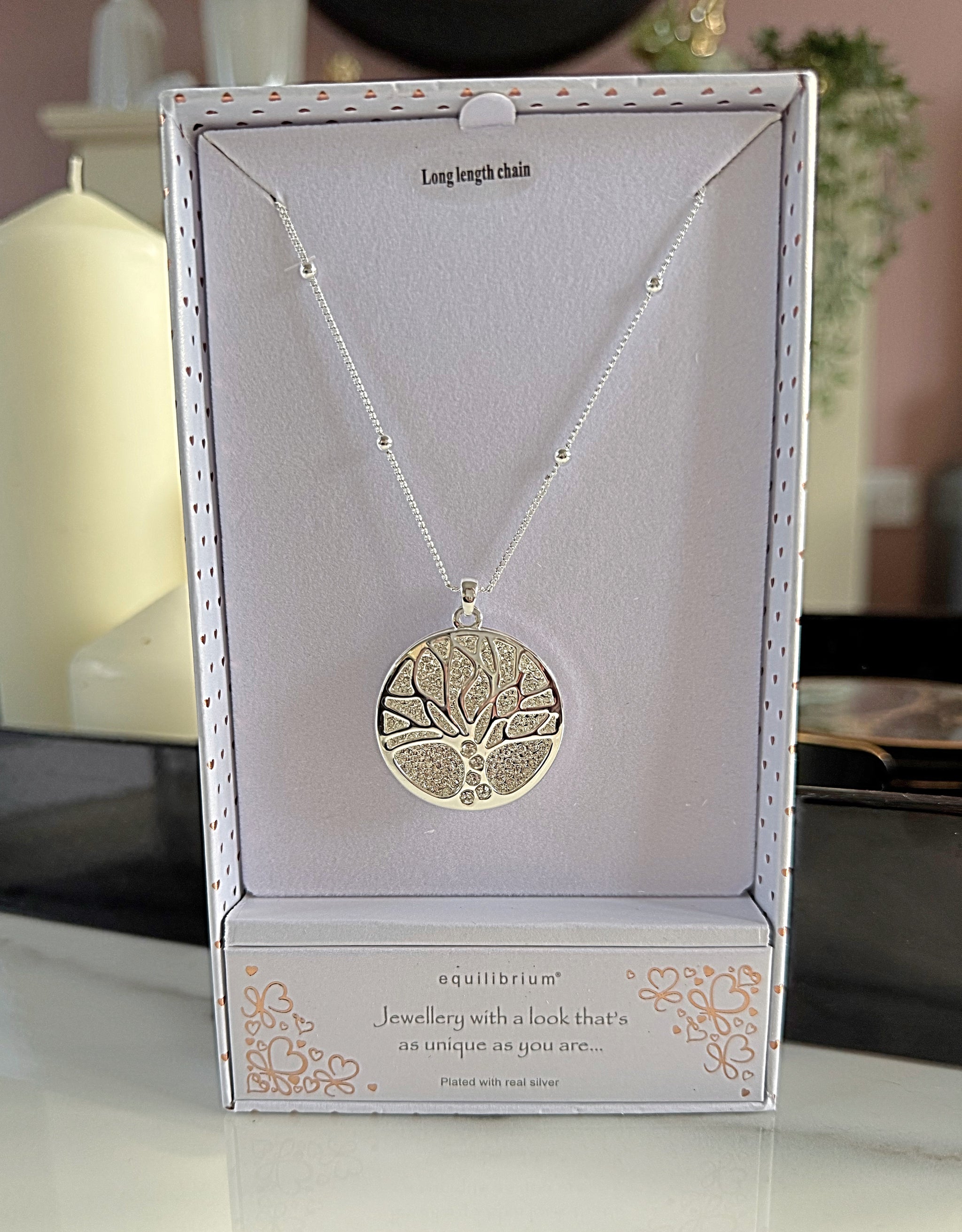 A beautifully detailed Tree of Life pendant on a long, elegant chain — a timeless symbol of strength, growth, and connection.