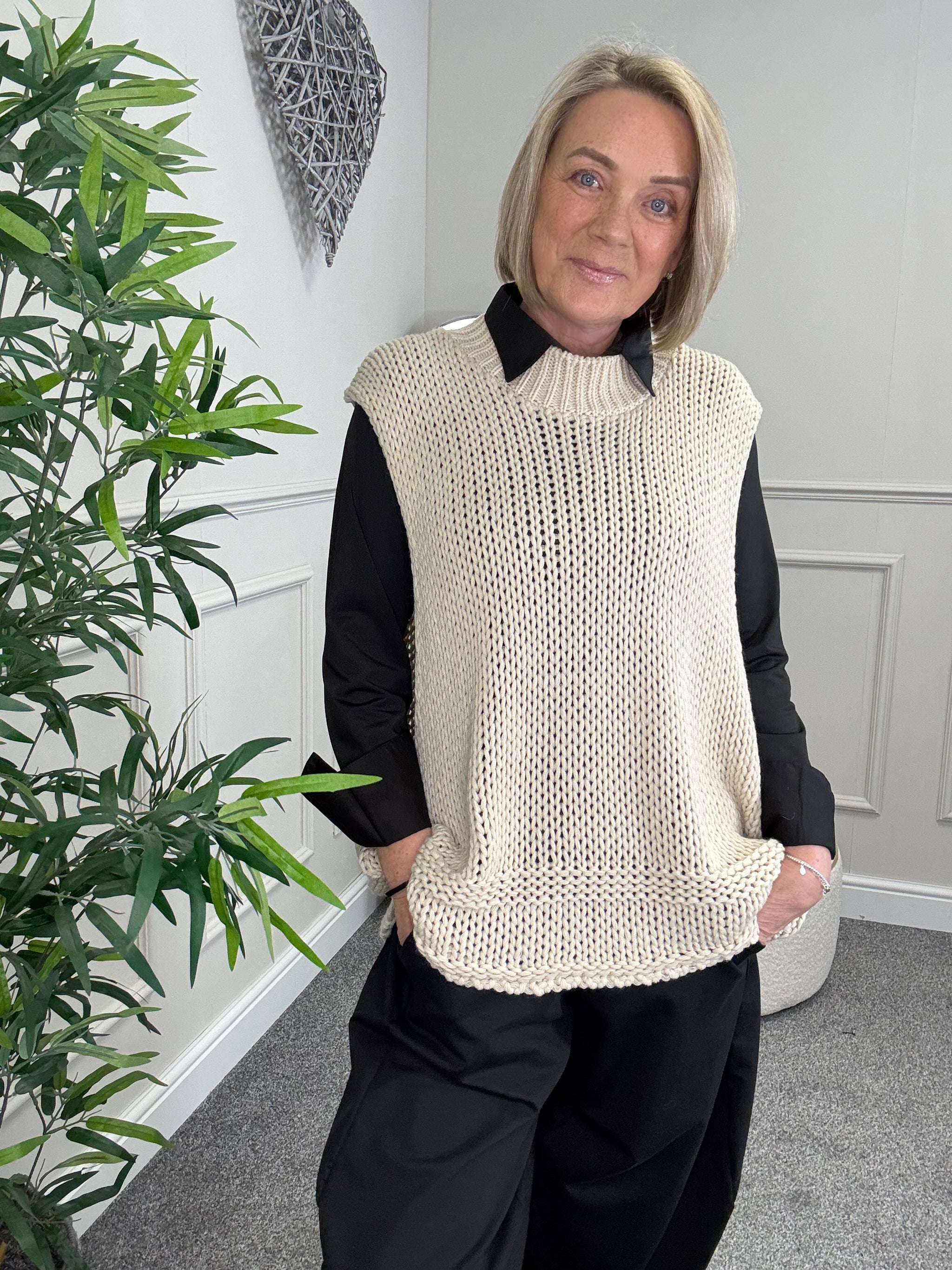 Style tip: Layer over printed mesh tops with jeans or wide-leg trousers for an effortless boutique look.