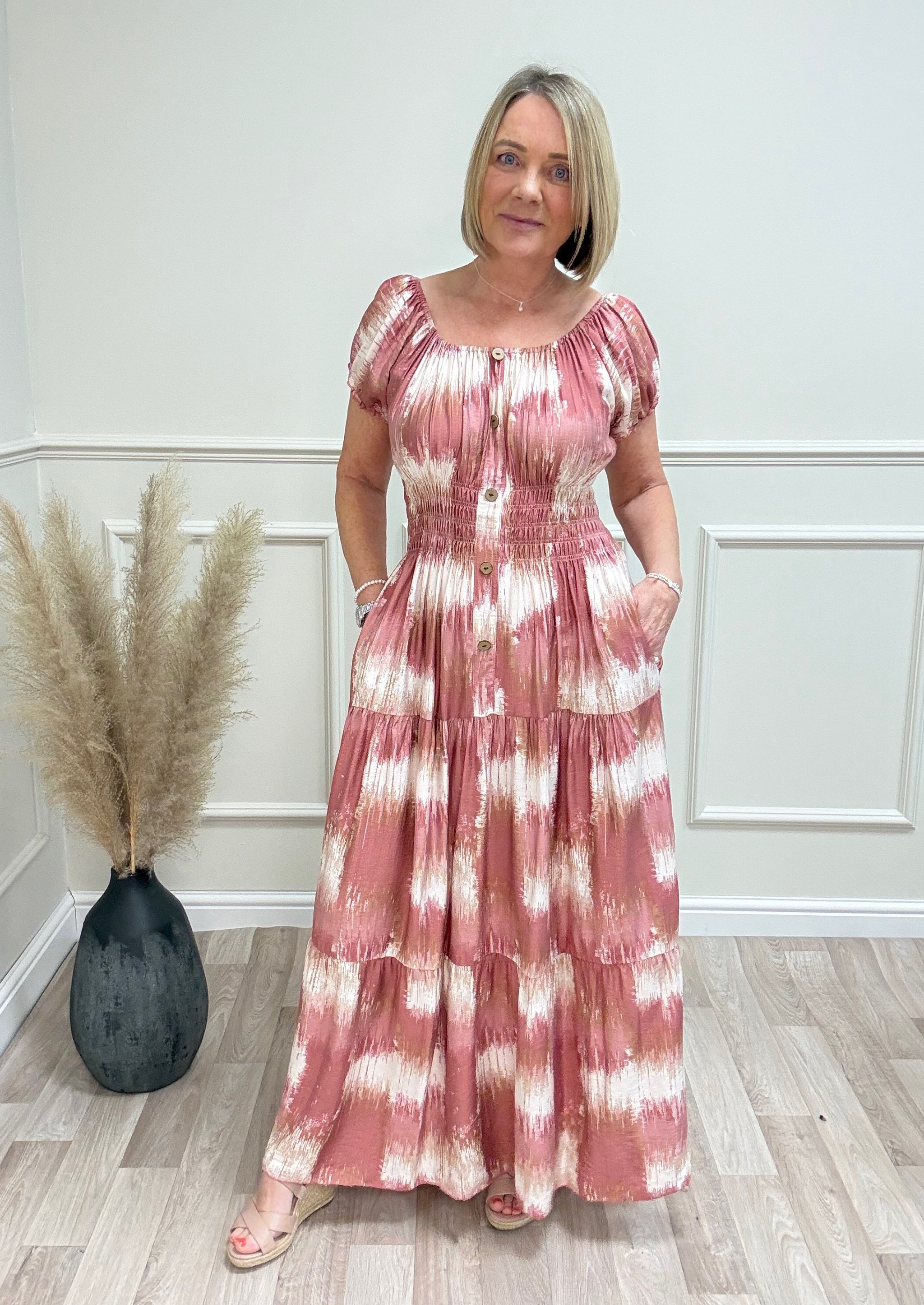 Brooke Tie Dye Print Magic Bardot Maxi Dress 8-18