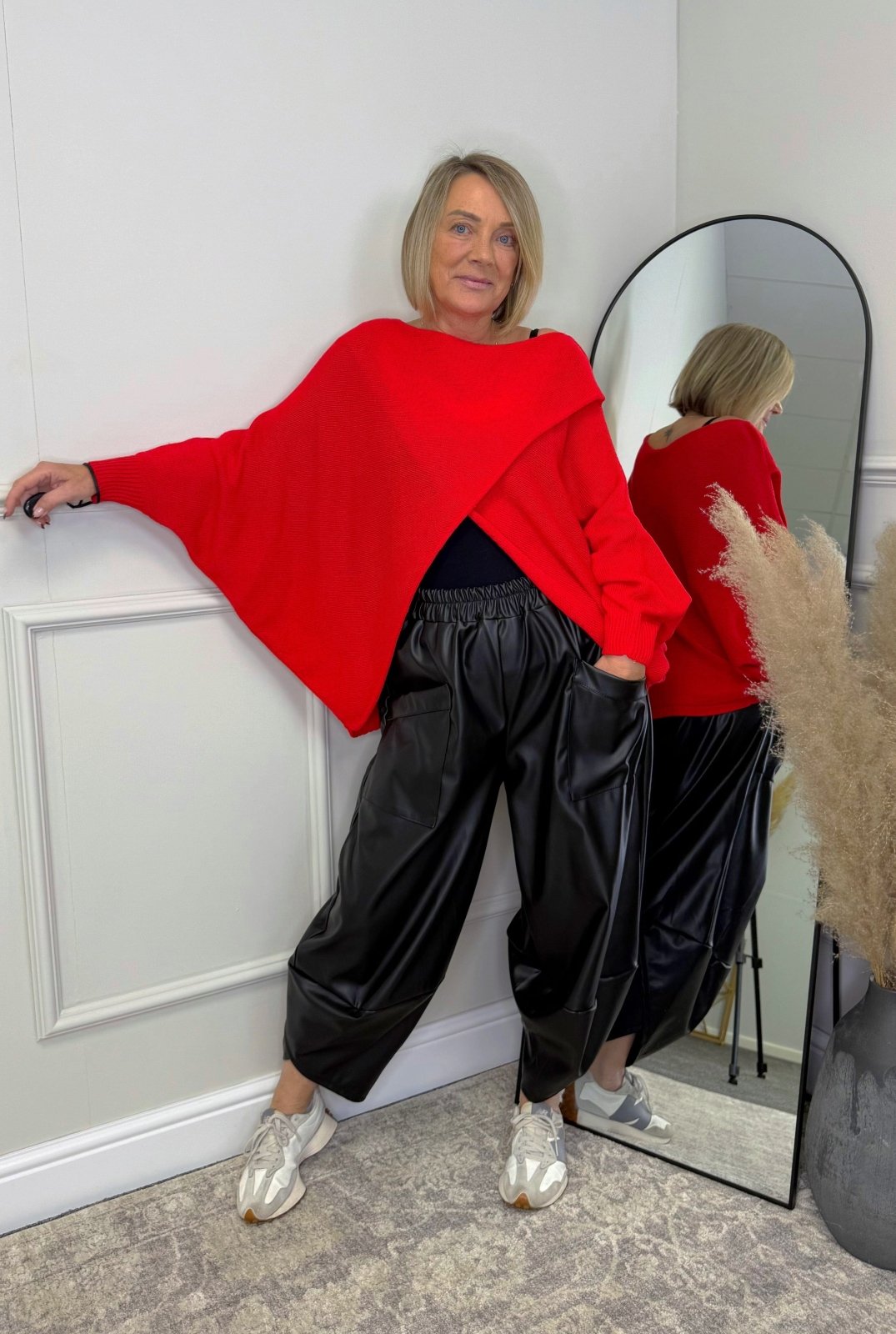 Step into modern comfort with the PU Lauren Cocoon Pants – a sculpted faux leather style made from 100% polyester PU. Designed with a relaxed cocoon silhouette that tapers at the hem, these trousers are the perfect blend of comfort and edge.