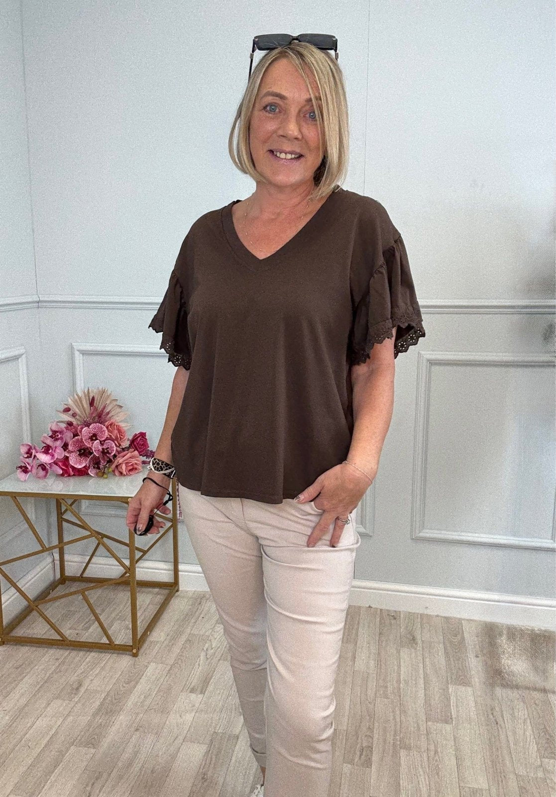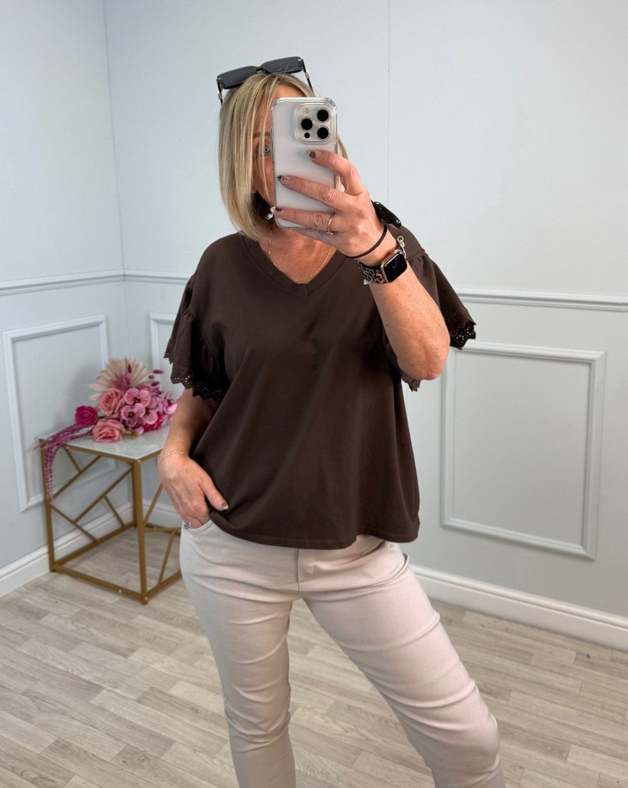 Lena Lace Sleeve T-Shirt One Size 8–16 Chocolate