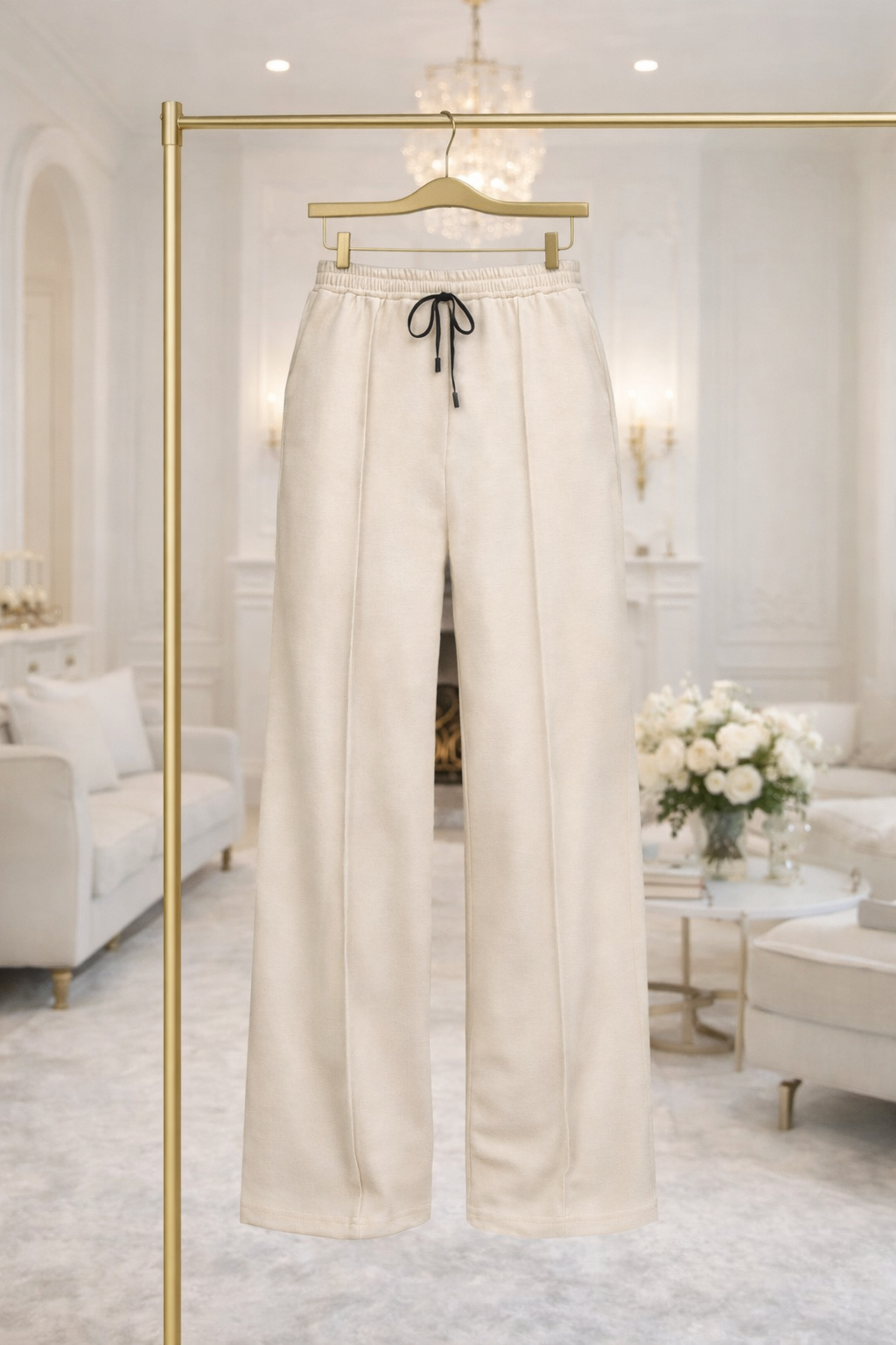 These trousers feature a flattering wide straight leg and pintuck central crease for a sleek look.