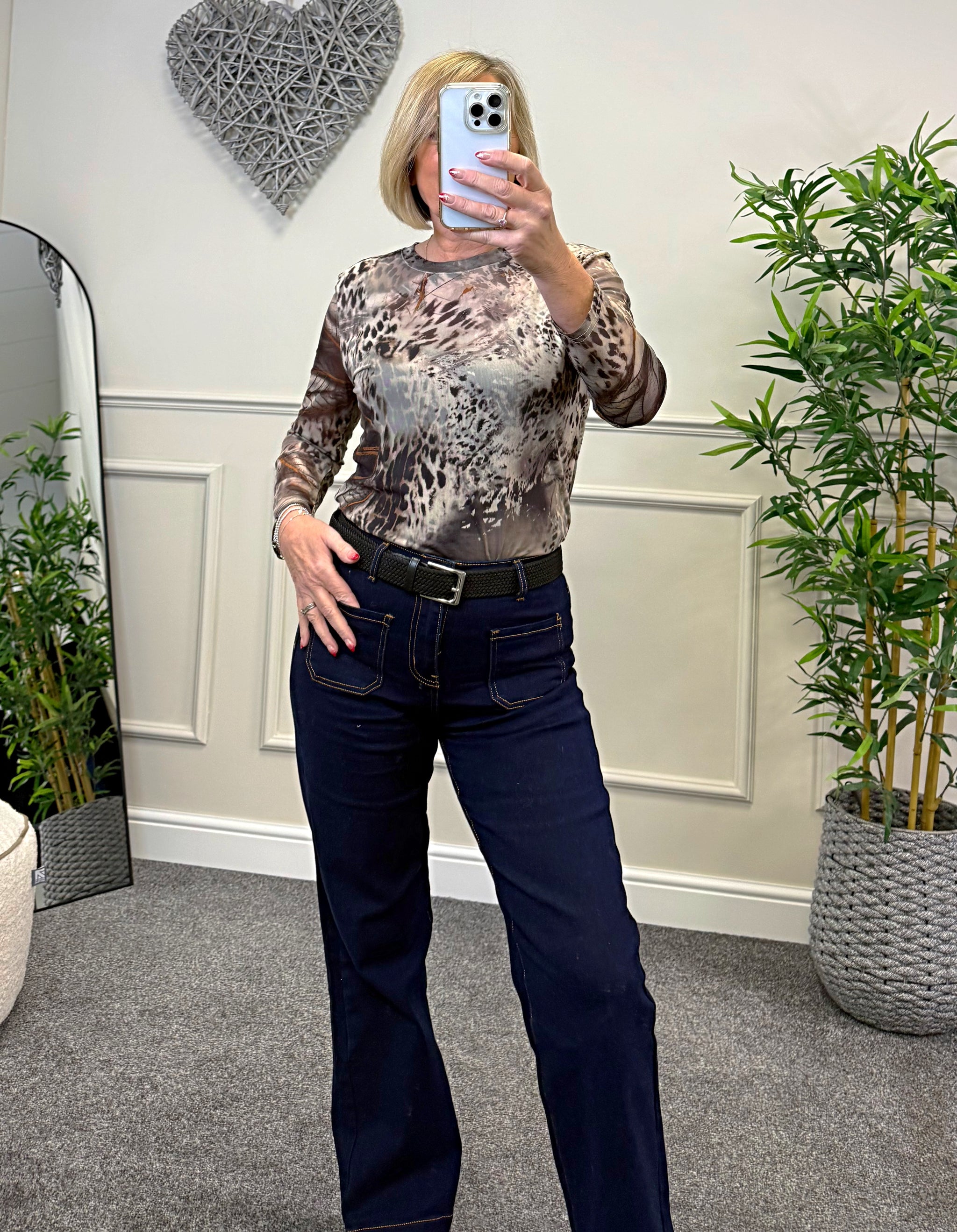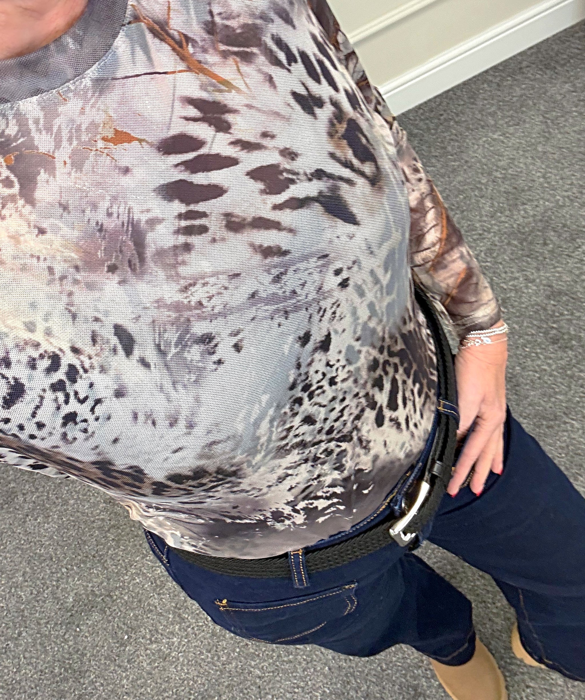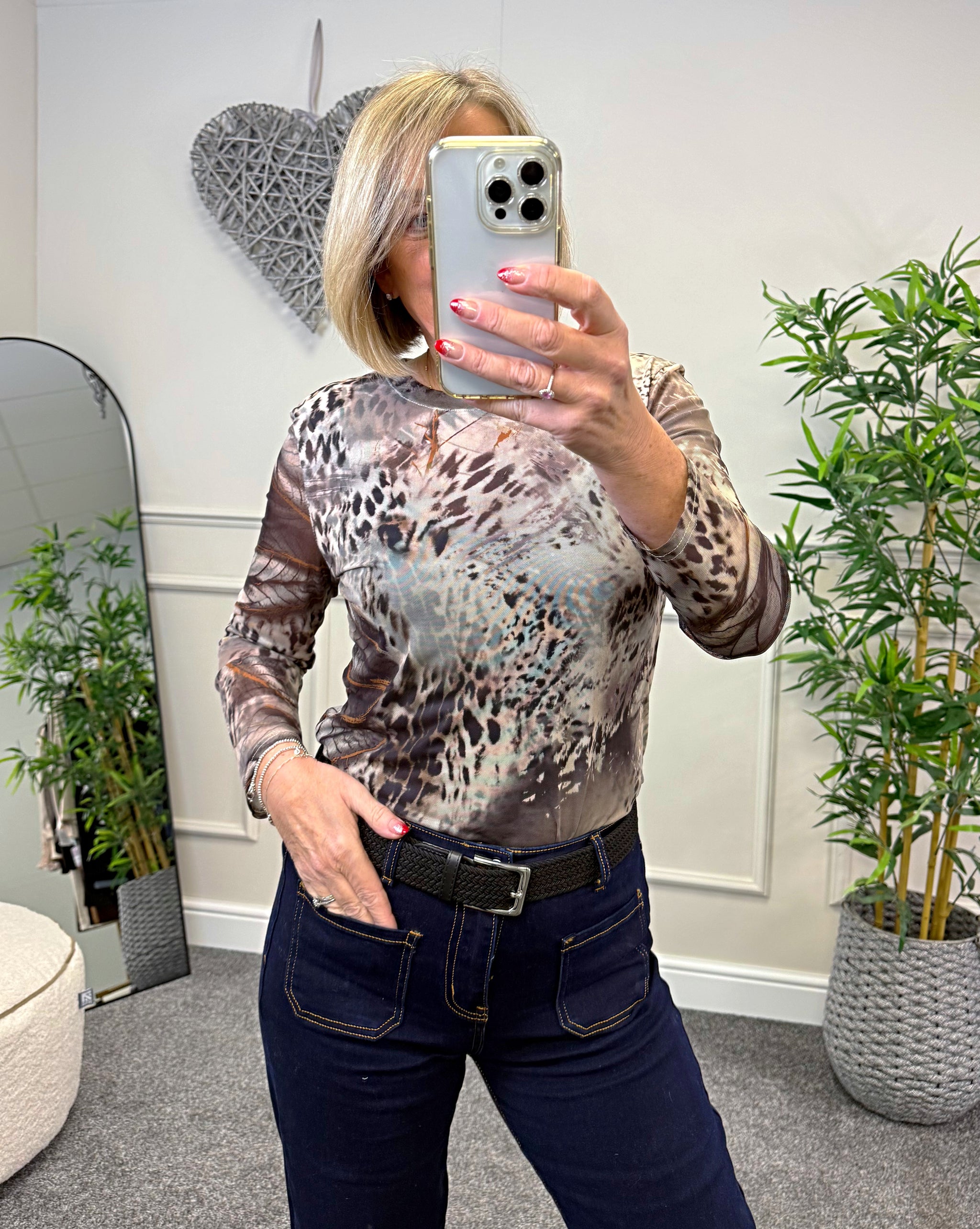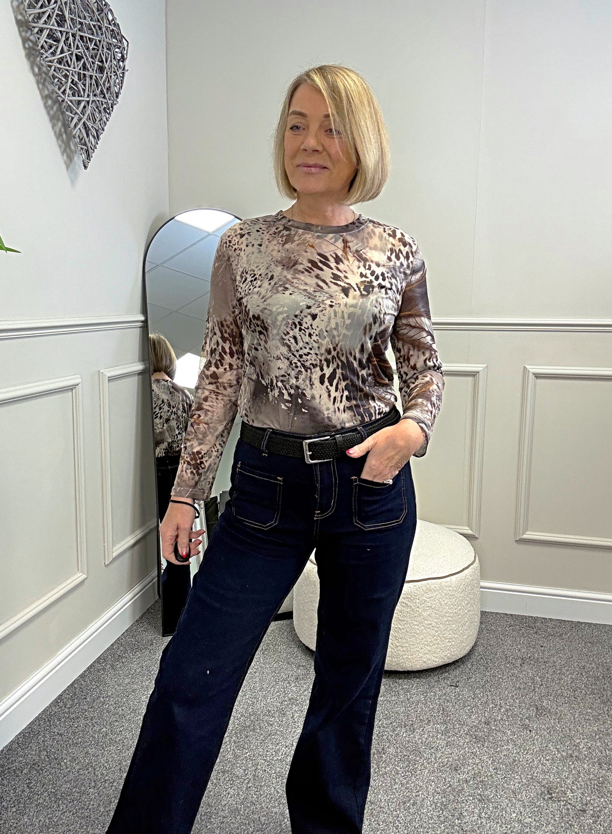 Carissa Abstract Animal Print Mesh Top – Women's Fashion Top