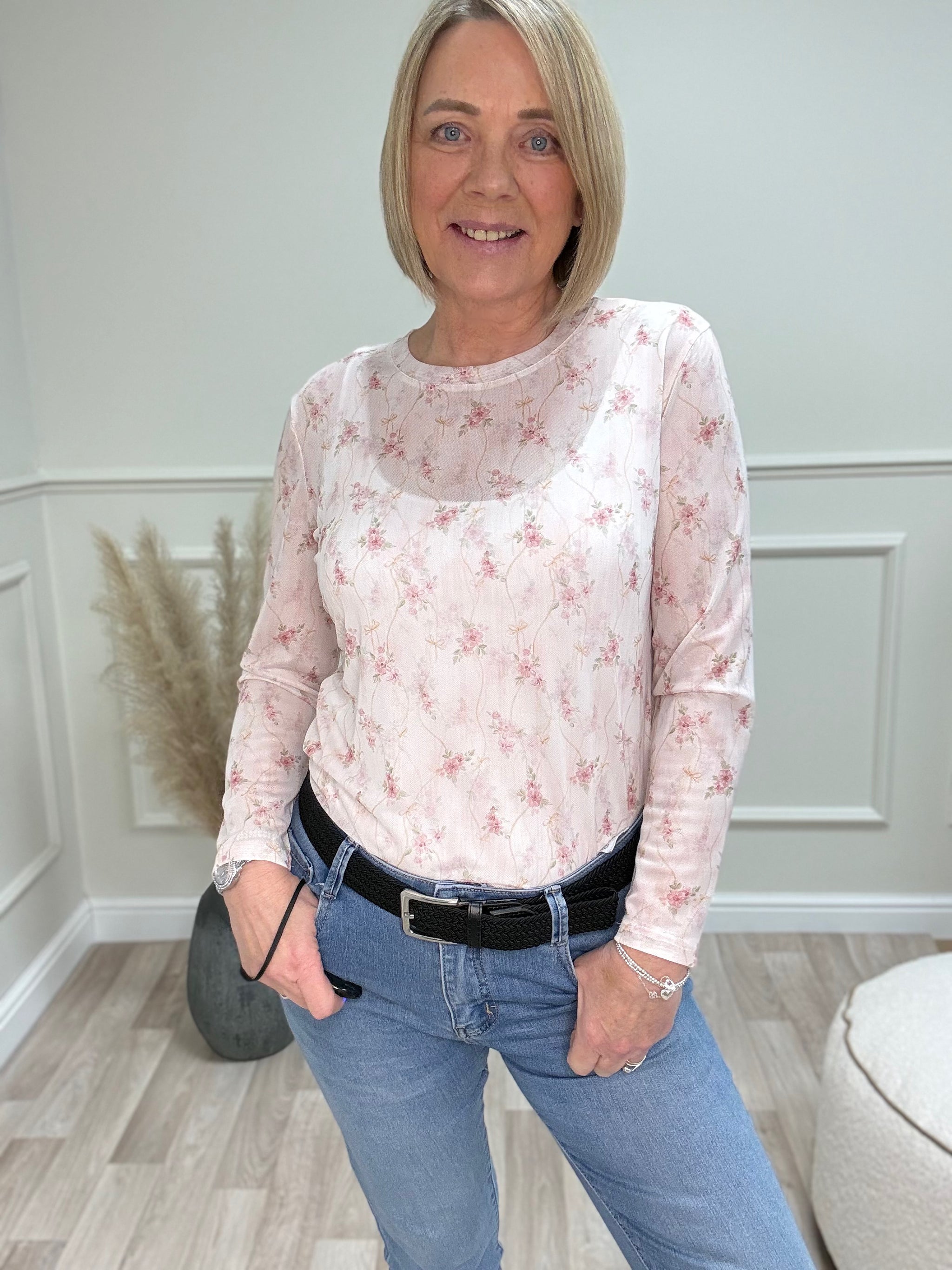Carissa Floral Print Mesh Top – Women's Fashion Top