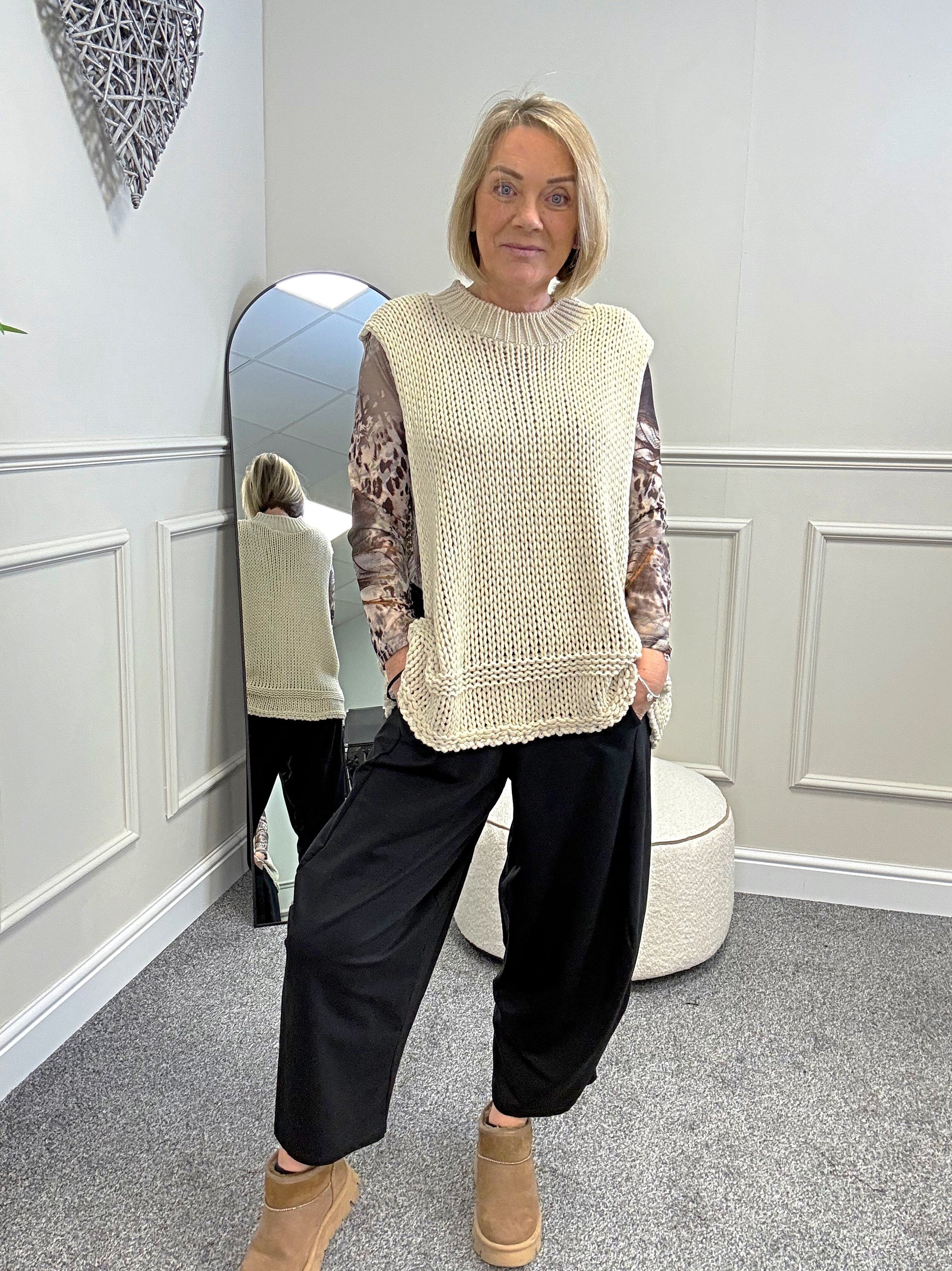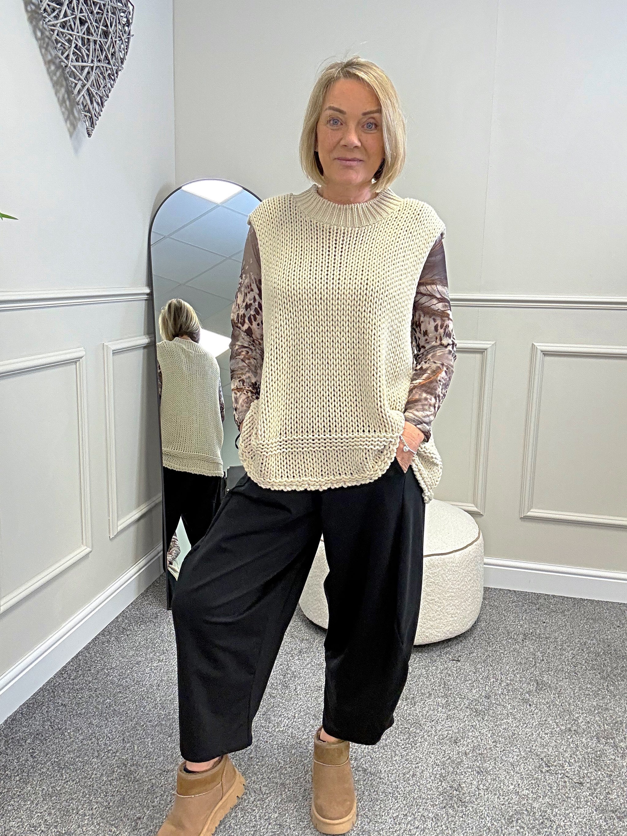 Style tip: Layer over printed mesh tops with jeans or wide-leg trousers for an effortless boutique look.
